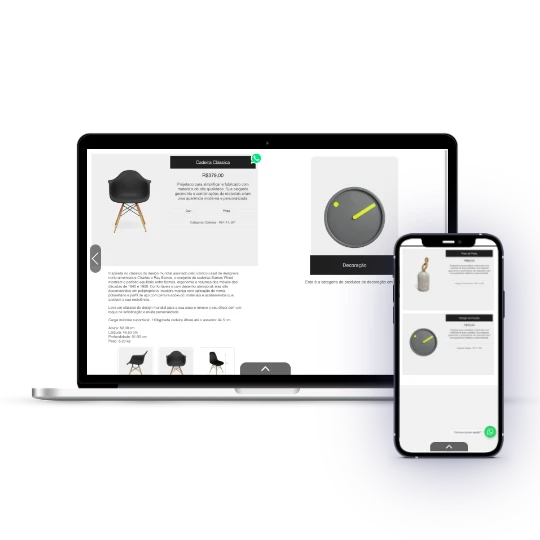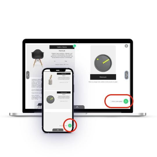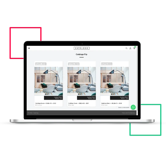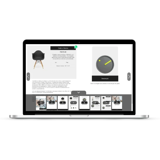 Seu catálogo flipbook pronto para vender no computador e no celular.