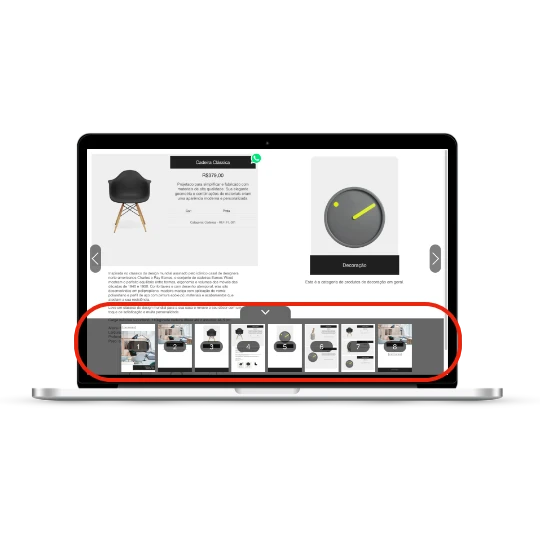 Navegação com miniatura de páginas para catálogos com muitas páginas.
